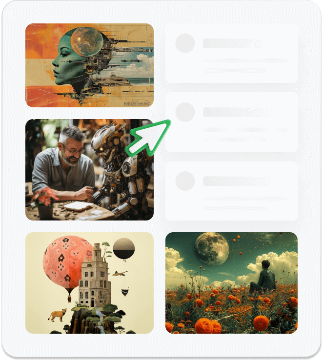 Type any idea that you want to create in text format. In the realm of AI creativity, let's craft a visual masterpiece,